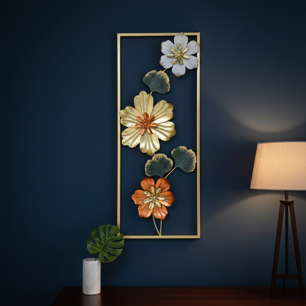 Golden Metallic Rectangular 3d Flowers Wall Décor