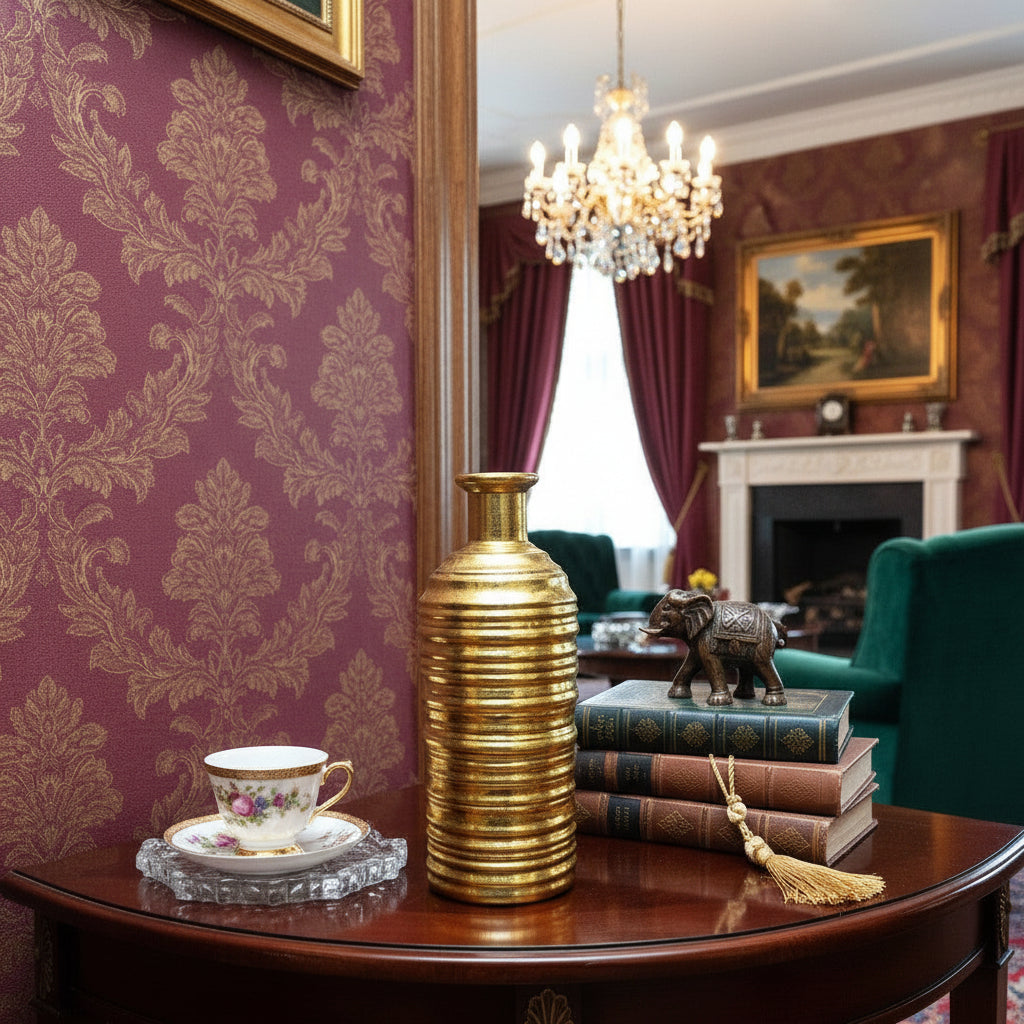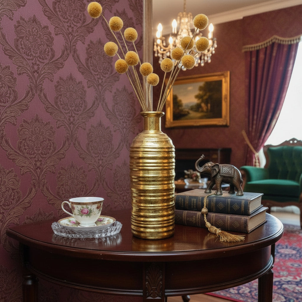 Inform when this item available Golden Resin Vase Bottle Shape - Horizontal Lines (without Flowers)