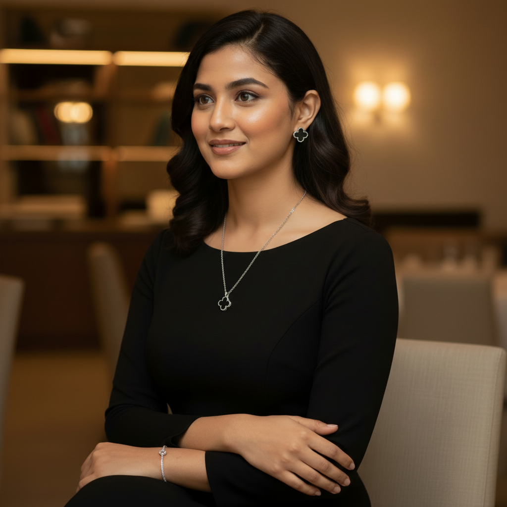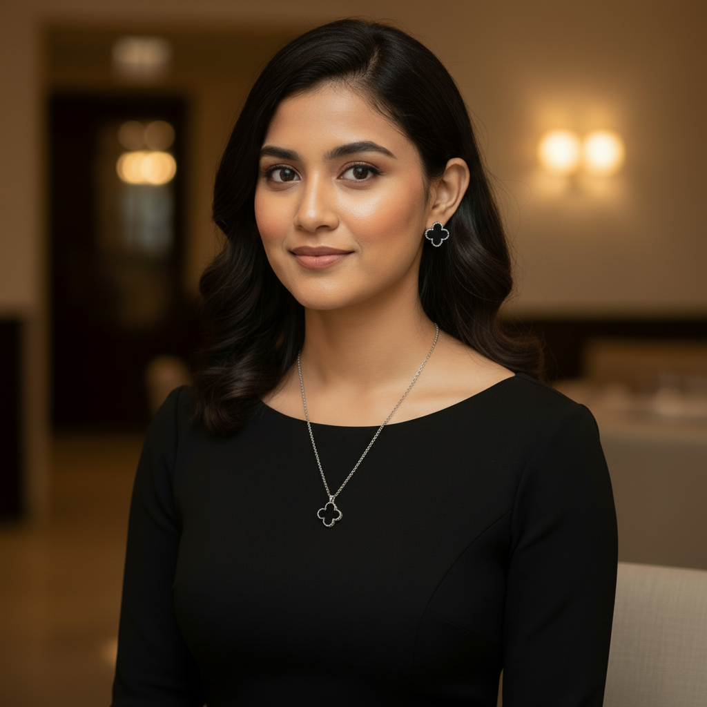 3-PCs Set of Silver-Black Four Leaves Clover Locket with Earrings in Gift Packing
