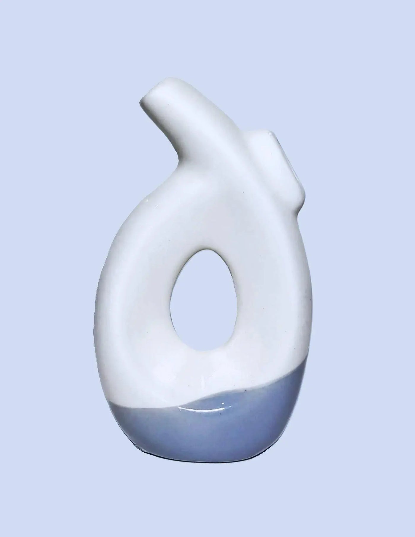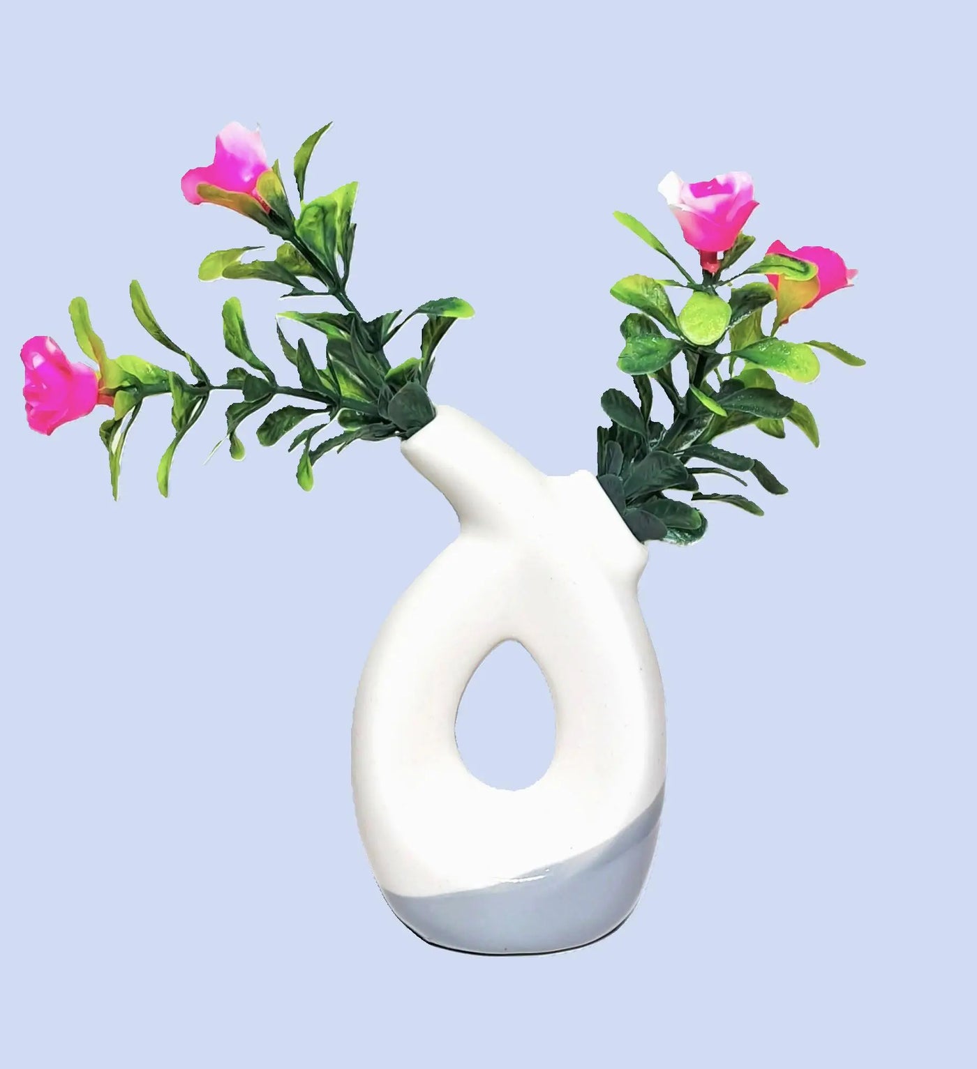 Aesthetic Dual Opening Ceramic Vase with artificial Plastic Plant Leaves & Pink flowers