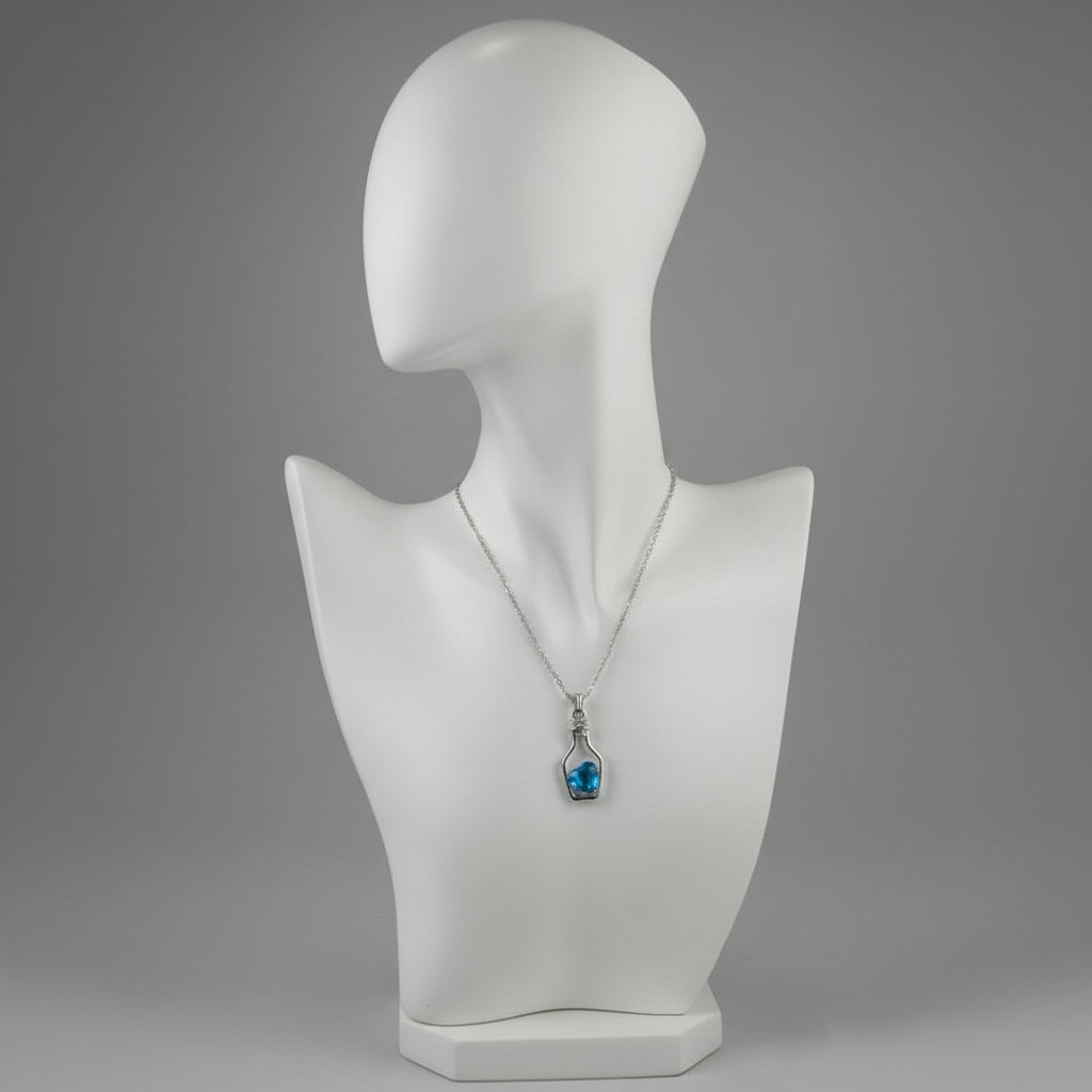 Aqua Crystal Heart in a Silver Hollow Drift Bottle Charm Locket in Gift Packing