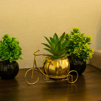 Classic Golden Ceramic Pot with Cactus Plant on Metallic Bicycle
